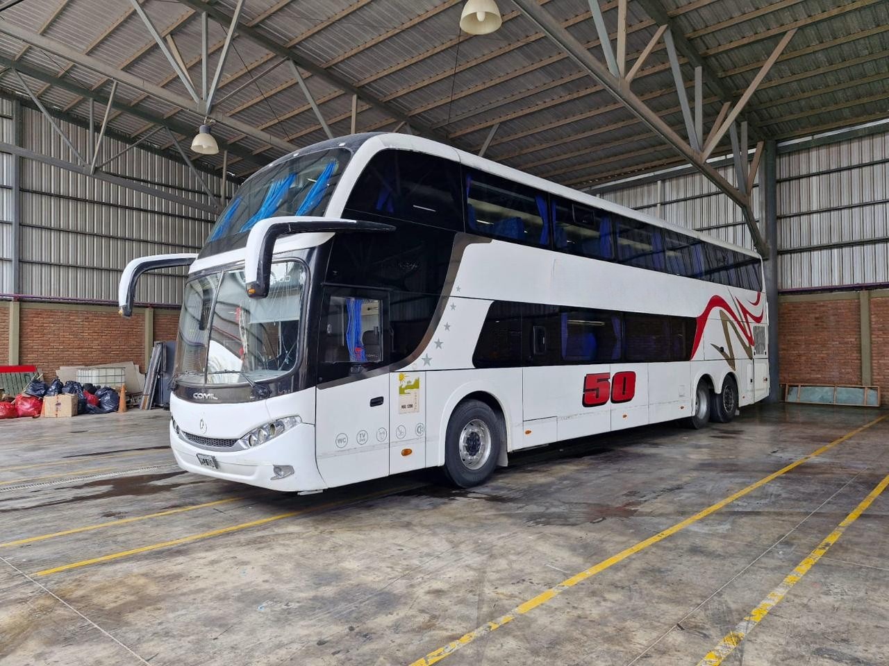 Año 2015 Carrocería Comil Sin detalles estéticos Motor Mercedes Benz o500 Cuenta con 710.000kms Muy buen mantenimiento Caja manual Asientos 60 semi Asientos muy cuidados Piso de madera Cabina muy cuidada Engomado completo Vigía de ruedas Audio y video Aire y calefacción Bar y baño Contado U$S155.000 Podemos financiar 50% Entrega 15 de febrero Se entrega transferido!!!