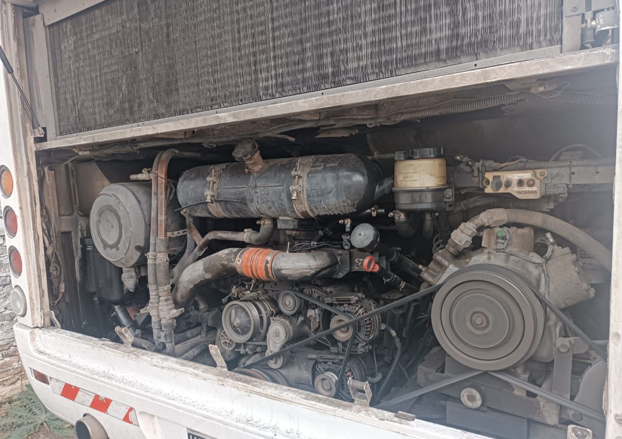 Año 2011 Carrocería Troyano Sin detalles estéticos Motor Scania K420 Muy buen mantenimiento Asientos 58 mix Asientos cuidados Cabina cuidada Engomado completo Audio y video Aire y calefacción Bar y baño Contado $35.000.000 Listo para transferir!!