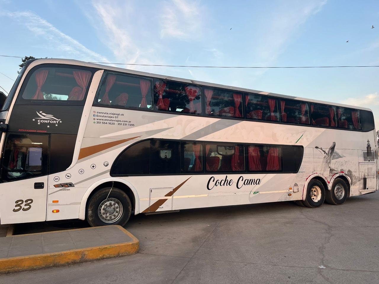 Año 2012 Carroceria Sudamericanas Sin detalles esteticos Motor Scania K380 Muy buen mantenimiento Asientos 40 cama Asientos cuidados Cabina cuidada Engomado completo Vigia de ruedas Aire y Calefaccion Bar y baño Audio y video Contado $53.500.000 Anticipo $23.500.000 Saldo 6 cheques de $6.000.000 Evaluamos permuta Listo para transferir!!!